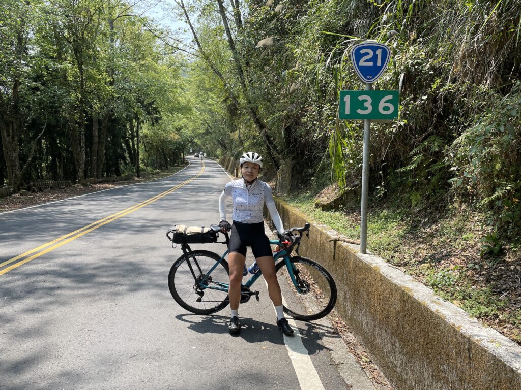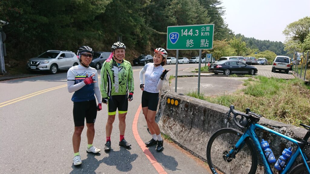 紀大嫂很專業的找了一個地點停下來幫大家補水,而且是可以望見玉山群峰的補給點。吃了香蕉喝了水休息一下,繼續往上。經過台21的136公里處路標停下來打卡,因為我是136車隊隊員啦!12點20分抵達塔塔加遊客中心,在這裡等待更多隊員集結上來,因為不只我,很多隊員都沒騎過接下來的產業道路,一下耗去一個多小時。