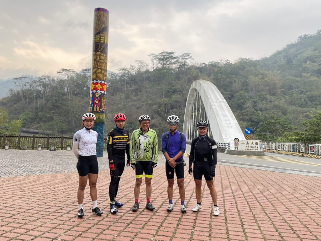 前一晚11點津慶最後一位抵達民宿,而第一個抵達水里民宿的榮泰則是下午4點多就到了,中間的差距之大超過六小時。但是三天出發的時候所有人都是一起,沒有人落單。寬限範圍極大的約騎團,有著團體的支援,卻又享受一個人的旅程,這是我出發時始料未及。第三天所有人的行李還是能託付給紀大嫂的補給車,要爬升接近3700公尺,當然是能少負重點是一點。出發沒多久中部區域的騎車神人光倫就加入我們。